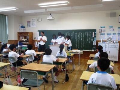 昨日、岱明B&G海洋センターから講師の先生においでいただき、低・中・高学年別に3時間にわたって「水辺の安全教室」を実施しました。不意の落水事故時の対処法「自分の命は自分で守る」ための知識と技能を学びました。