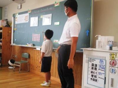 本年度の重点取組の一つ、子供達の良い姿勢の保持のため、保健委員会主催の「ピンベタジー名人」表彰