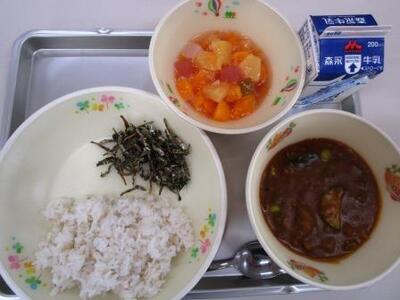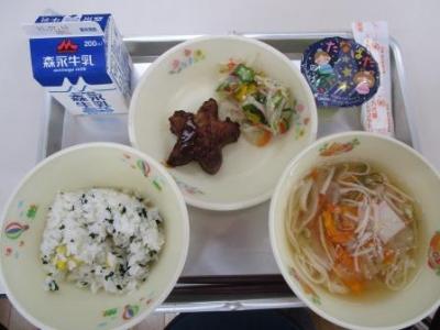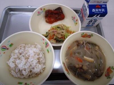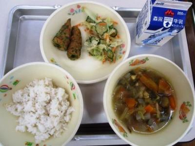 今日の給食は「今月のみそ汁」…里芋のお味噌汁でした。おいしかったです