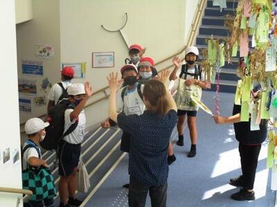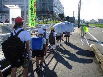 徒歩通学、暑い中に頑張って歩きました
