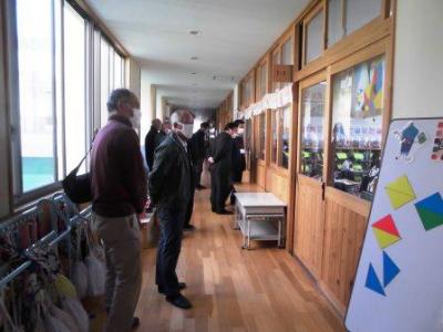 今日は、学級の人数増に備え理科室台に可動板設置の下見においでくださいました。