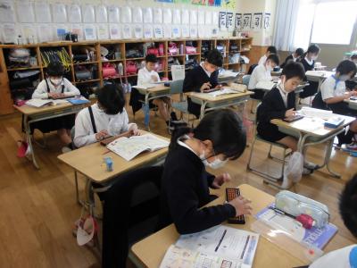 早速よい姿勢で学ぶ3年生