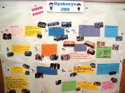 5の2では先生のイラストの前で記念写真