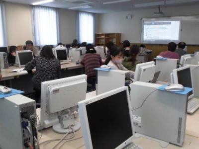 職員にはすでにタブレットが一台ずつ配付されました。(パソコンの影で見えませんが、タブレットを操作しながらの研修です)