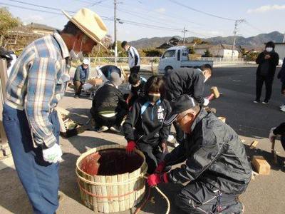 18日、学校運営協議会の皆様と中学校生徒会新執行部による門松作りが行われました。材料は全部地元産の立派な物を揃えていただき、竹の裁断・竹垣作り・松竹梅飾り…等、すべて手作りの立派な、しかも温かみのある門松が一対正門前にしつらえられました。伝統の行事を若者に受け継いでいただき、立派な跡取りが育っていきます。おかげで学校も気持ちよくお正月さんをお迎えすることができます。ありがとうございます