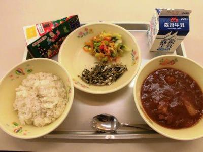 今日は菊池地方の味。「雑穀ご飯、武光公鍋、ヤーコンと牛肉のきんぴら、からいもサラダ、牛乳」でした。菊池一族15代当主・武光公が戦の前に食べていたという鍋は、具もたっぷり、あつあつで、なるほど力がわいてきました。ヤーコンのきんぴらもしゃきしゃきの食感と牛肉のうまみでとてもおいしかったですいつも旬の食材を活かした栄養満点給食、ごちそうさまです