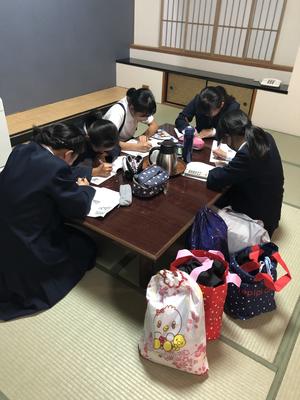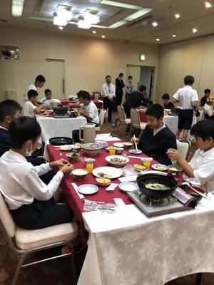おはようございます。2日目の朝、みんな元気に迎えています。昨日ホテルに着いて部屋ごとに充実の時間…入館式、夕食、入浴と笑顔で過ごしました。今朝、少し眠そうな班もありますが体温OK、退館式後、朝ごはんを美味しくいただき、さあ、出発です。外は気持ちの良い朝です。