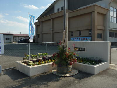 【新玉名駅へ花を・・・おもてなしフラワープロジェクト】昨日に引き続き、「おもてなしフラワープロジェクト」として、中学生と環境ボランティア委員会の児童5名の代表が、新玉名駅へパンジンーやアリッサムを植えたプランターを届けました。駅長さんをはじめ関係者の方も贈呈式に参加していただきました。今日も、学校運営協議会の方々にご協力いただきました。