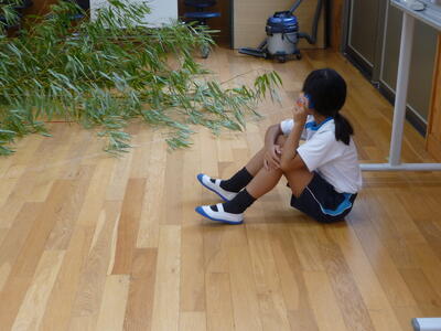 発表後、各教室で担任の先生から、ほうきのしまい方や環境ISO(水や電気の無駄遣い)について話がありました