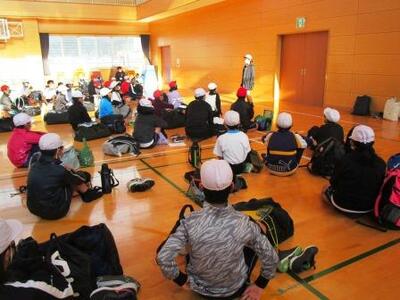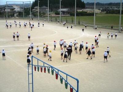 お弁当後、運動場では解団式。「みんなの協力があって優勝できました。」