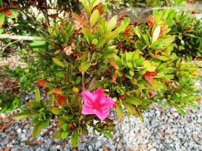 その横で、季節外れのサツキが1輪だけ花をつけていました。