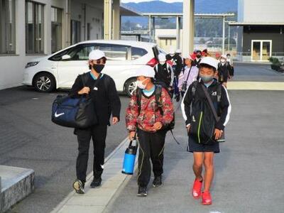 新型コロナウイルス感染拡大防止の観点から中止していたあいさつ運動を3ヶ月ぶりに再開しました。今日は奥野・上小田・山部田の皆さんです。中学生が文化祭の練習で参加できませんでしたが、少人数ながら中学生の分まで大きな声で元気に挨拶ができました。