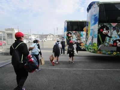 4年生は見学旅行です。「行ってきます!」