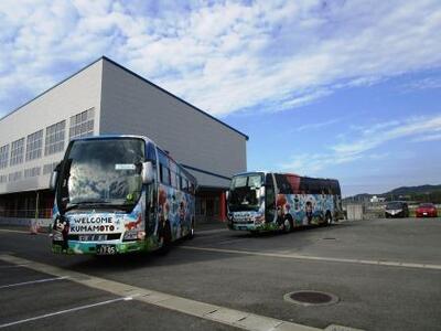 バスへ!「わーい!くまモンバスだ!」