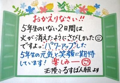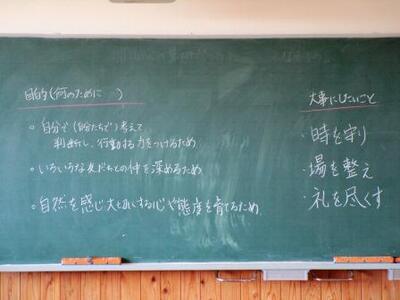 出発後の教室の黒板。一人一人も学年全体もパワーアップして帰ってくることでしょう