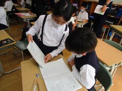 ノートを見せながら自分の考えを友達に伝えたり…