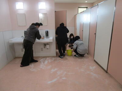 女子トイレはお母さん方が、テキパキと磨き上げ!