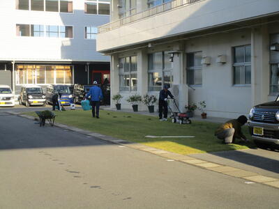学校運営協議会の皆様も芝刈りや駐車場整理でで汗を流してくださいました。