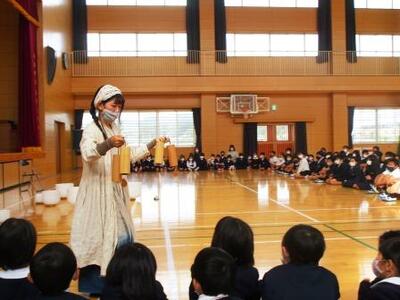 今日は玉名市の音楽アウトリーチ事業により本校体育館で音楽会を実施しました。おいでいただいたのは「ナノハナ」さん。白いクリスタルボールが中心のヒーリングミュージックを奏でてくださいました体育館いっぱいに広がる柔らかな響きに身も心もリラックスしました
