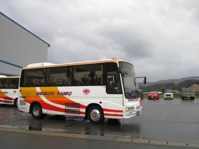 おはようございます。昨夜はどの部屋も静かに(?)就寝し、爽やかな朝を迎えました。みんな元気です。朝食も協力していただき時刻を守って集合…バスに乗車し今からハウステンボスへ出発です!