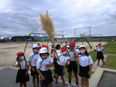 地域学校協働活動推進員の大倉様から大きなススキ(パンパスグラス)をいただきました。今夜は中秋の名月・お月見ですね。