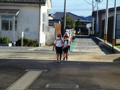 4年生までの下校。先生から「明日は、ちゃんと朝ご飯を食べてこなんよ!」「ハイ!」