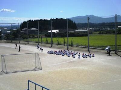 今朝はきれいになったグラウンドで小学生は朝遊び、中学生は体育大会の朝練が行われていました。感謝の気持ちをもたせます