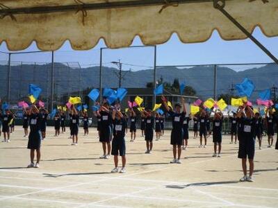 彼岸過ぎても残暑の残る中、中学校の体育大会の練習が熱を増しています。小学校にとっても刺激となります