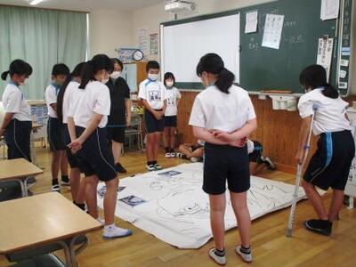 道徳「みんなのために」という授業で、先生が先日の学校運営協議会&PTA本部役員の皆様方の美化作業に触れ、「玉陵小でもみんなのために見えないところで汗を流してくださっている方々がいます。その方々のために皆さんができることは何でしょう。」と問いかけ、考えを深めていました。