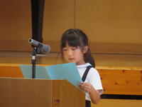 5時間目が前期の終業式でした。終業式の前に多読賞の表彰がありました。終業式では校長先生の話の後、2年生、3年生、4年生の代表の児童が前期の反省を発表しました。前期頑張ったことをみんなの前ではきはきと発表してくれました。最後はみんなで校歌を歌いました。