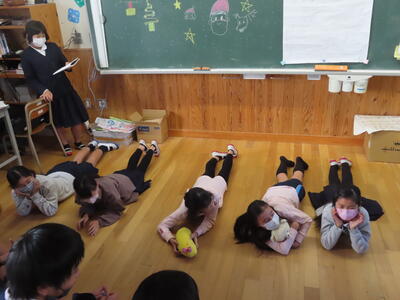 【後ろ回りって難しい・・・2年1組 体育】体育の時間にマット運動をしました。今日は、グループに分かれて後転の練習をしました。マットに少し傾斜をつけて、友達と教え合いながらがんばりました。