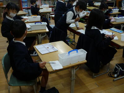 【電磁石の性質・・・5年2組 理科】理科の時間に、「電磁石」を作って、金属類がつくかどうかを調べていました。磁石は身の回りにたくさんあっても、普段、電磁石を目にすることはあまりないので、子どもたちも驚きながら実験をしていました。