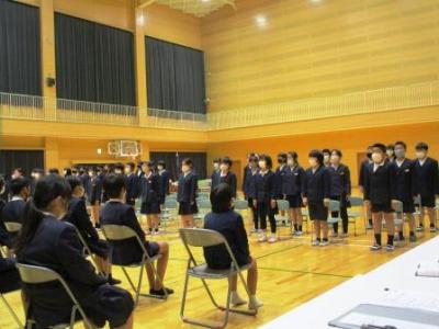 今朝は中学1年生が4人、先輩に交じってあいさつ運動に立ってくれていました。あいさつの声も先輩を見習い、大きな声でとても気持ちの良いものでした。「中学生になったなあ!」と実感することができ、嬉しい朝でした。