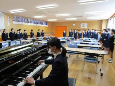 修了式前の朝の時間、5年生が最後の歌の練習…複数の伴奏者が一生懸命練習して見事に伴奏をしてくれました。ありがとう