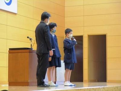 修了式後に、本年度、限られていましたが、コンクールへの応募で見事入賞した児童の表彰を行いました。