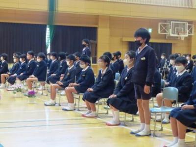 今日が松川会長さんの誕生日と聞いて、思わず拍手する小中学生。「嬉しい1日です。」と会長さんも笑顔でした