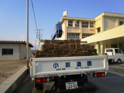 たくさんの芝生が運び込まれ…