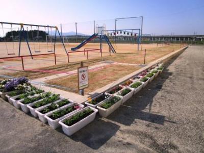 玉名市教育委員会様が、運動場の西側、遊具と校舎入り口の間に芝生を植えてくださいました。校地内緑化と運動場からの泥上がり防止のために特別に予算をつけてくださったものです。本当に有り難いことです。今はまだ養生中ですが、少しずつ新芽が出てきており、緑の芝生が生えそろうとさぞきれいだろうな…と楽しみです