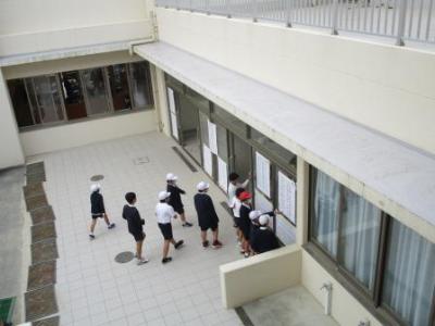 中学1年生もすっかり中学校になじんで…体育委員が朝から生徒昇降口をきれいに掃いてくれていました。