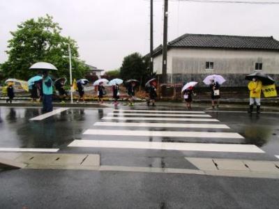 雨の中の登校。土曜日も見守りいただき感謝