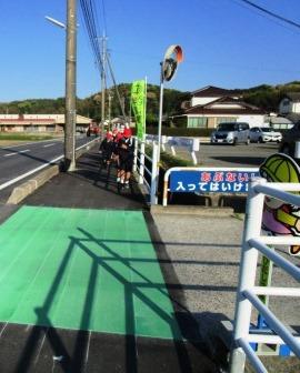 県北病院の駐車場入り口歩道上に、安全喚起のため緑色の塗装をしてくださいました。