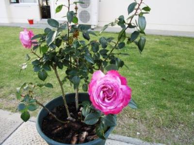 先日紹介した薔薇の鉢を大倉さんが剪定してくださいました。こうすると次の花に栄養が渡るそうです。