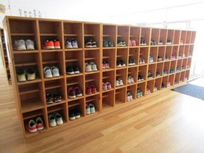 児童昇降口、1・4年生の靴箱です。4年生と同じくらい1年生も靴のかかとを揃えて入れています。上級生のお手本が1年生の姿として表れていますね