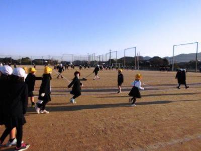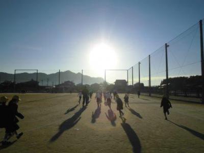 まだ7時50分。先生の整地と一緒に、進んでランニングを始める子もいます。元気