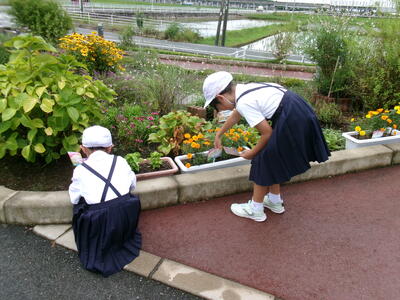 今年は、中学生が新玉名駅へ、小学生が県北病院へと別れてお花をプレゼントしました。今年の暑さは厳しく、お花を育てるのはとても難しかったです。皆さんの心が少しでも明るくなるお手伝いができれば嬉しいです。