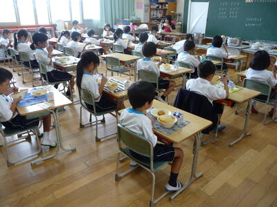 【きちんと黙食ができていました・・・給食】 給食の時に教室を回ってみたのですが、感染防止のため「黙食」ができていました。