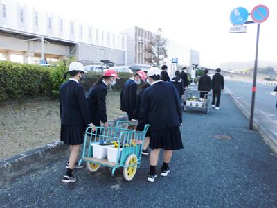 13日の放課後、本校から5人の環境委員さん代表が参加し、新玉名駅までお花を届けました。中学生の背中を見ながら一生懸命行動する姿が、眩しかったです駅長さんもたいそう喜んでくださり、プロジェクトは大成功
