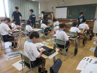 中学校の2年生7名が職場体験で小学校に来ました。1時間目から5時間目まで1・2・3・4・6年生の学習に参加しました。1年生では算数の授業で数の数え方、2・3・4年生では体育の授業で模範演技、6年生では書写の毛筆の授業に参加しました。少し緊張気味の中学生でしたが、時間が経つにつれ、笑顔で子どもたちに接する姿が見られました。小学校の子どもたちはお兄さん、お姉さんたちに教えてもらい楽しそうでした。7人の生徒たちも、貴重な体験ができたのではと思います。