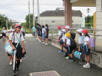 夏休み前最後の朝のあいさつ運動を行いました。今日は、栗崎・大坊地区の子どもたちが担当でした。中学生もあいさつ運動を行っており、「おはようございます」と大きな声が響いていました。