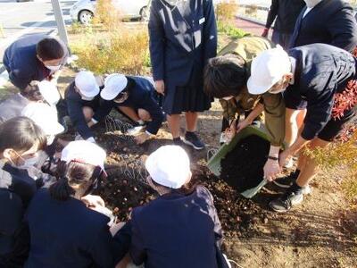 まず病院の花壇にチューリップの球根を寄せ植え。球根は花工房てんすい様からいただきました。